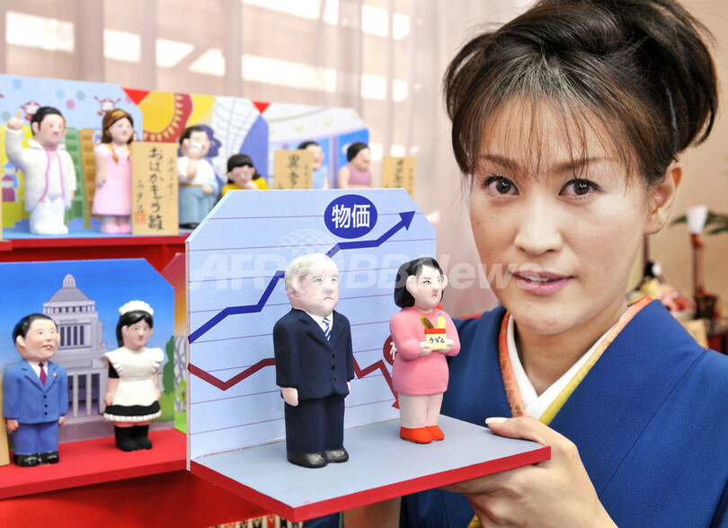 ニュース 政治・経済 金融危機に困るブッシュ氏、怒る主婦 世相反映「変わりびな」 2008年12月5日 14:45 発信地:東京 [ アジア・オセアニア 東京 ] このニュースをシェア ‹ › ❮ 2/3 ❯ 都内のひな人形メーカー「真多呂人形(Mataro Doll Craft)」ショールームで開かれた記者発表会で披露される、世界金融危機をテーマにしたジョージ・W・ブッシュ(George W. Bush)米大統領と主婦の「変わりびな」(2008年12月5日撮影)。(c)AFP/Yoshikazu TSUNO 画像作成中 ! 【12月5日 AFP】東京都台東区のひな人形メーカー「真多呂人形(Mataro Doll Craft)」は5日、今年の世相を反映した恒例の「変わりびな」を、報道陣に公開した。世界金融危機をテーマにした変わりびなでは、表情の暗いジョージ・W・ブッシュ(George W. Bush)米大統領と、まゆをつり上げた主婦が対になっているほか、地球温暖化を表わした変わりびなも登場した。(c)AFP 政治・経済 一覧へ> メディア・報道関係・法人の方向け 写真・動画 購入のお問合せ>