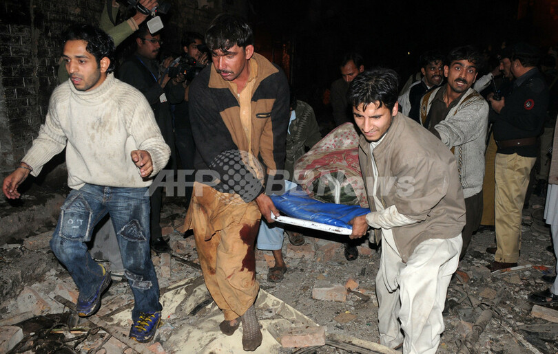いずれの爆発についても犯行声明はでていない。パキスタンでは、自爆攻撃などの攻撃が相次いでおり、過去16か月で1500人以上が死亡している。(c)AFP/Saad Khan