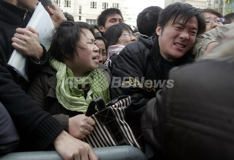 ニュース 政治・経済 就職フェア会場に入れないほどの人殺到、中国 2008年12月6日 12:33 発信地:鄭州/中国 [ 中国・台湾 中国 ] このニュースをシェア ‹ › ❮ 5/6 ❯ 中国中部河南(Henan)省鄭州(Zhengzhou)で開催された就職フェアに殺到し、押し合う求職者ら(2008年12月4日撮影)。(c)AFP 画像作成中 ! 【12月6日 AFP】中国経済が11月も一層減速するなか、河南(Henan)省鄭州(Zhengzhou)では就職フェアに求職者が殺到し、入れない人たちが押し合う騒ぎとなった。中国では毎年2400万人が職を求め、現在のところその半数の需要しか満たせていない。(c)AFP 政治・経済 一覧へ> メディア・報道関係・法人の方向け 写真・動画 購入のお問合せ>