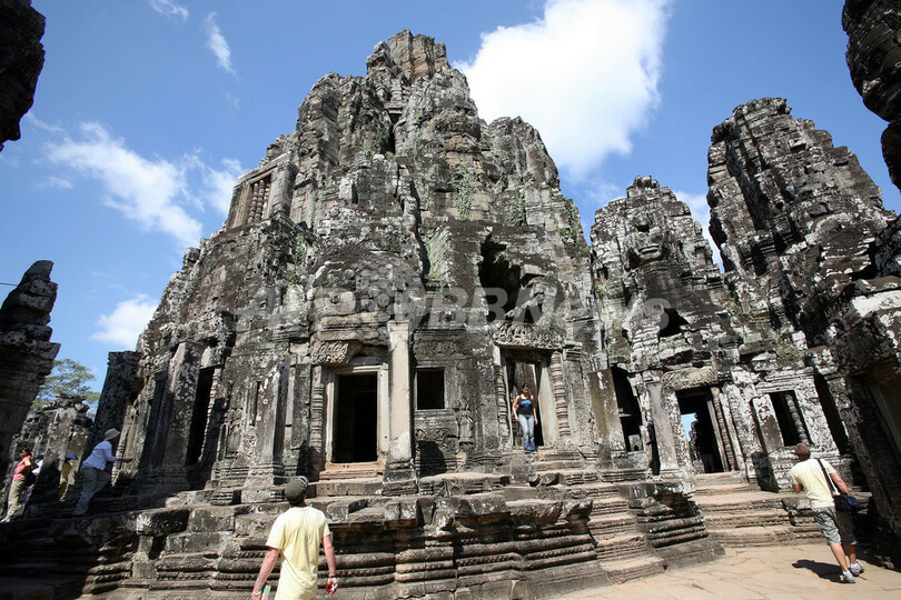 【12月7日 AFP】2007年のカンボジアへの海外旅行者数は200万人を超え、依然として観光業は同国の数少ない外貨獲得源の1つとなっている。同国では内戦から数十年がたった現在も、数百万人が貧困生活を余儀なくされている。写真はカンボジアの首都プノンペン(Phnom Penh)北西約314キロ、シエムレアプ(Siem Reap)市にあるアンコール(Angkor)遺跡内のバイヨン(Bayon)寺院を散策する観光客。(c)AFP