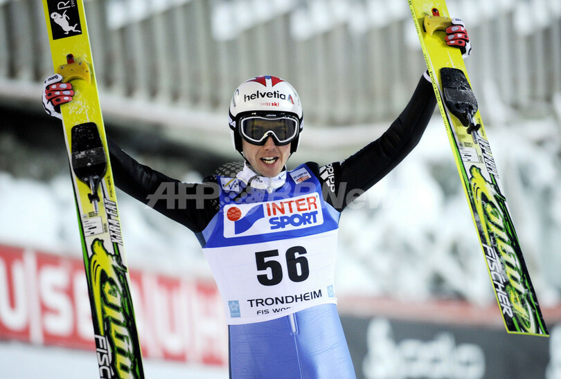 【12月8日 AFP】スキージャンプW杯2008-09第4戦、ラージヒル個人。スイスのシモン・アマン(Simon Ammann)は、1本目に140.0メートル、2本目に135.0メートルを記録し、合計280.2点でシーズン2勝目を挙げた。