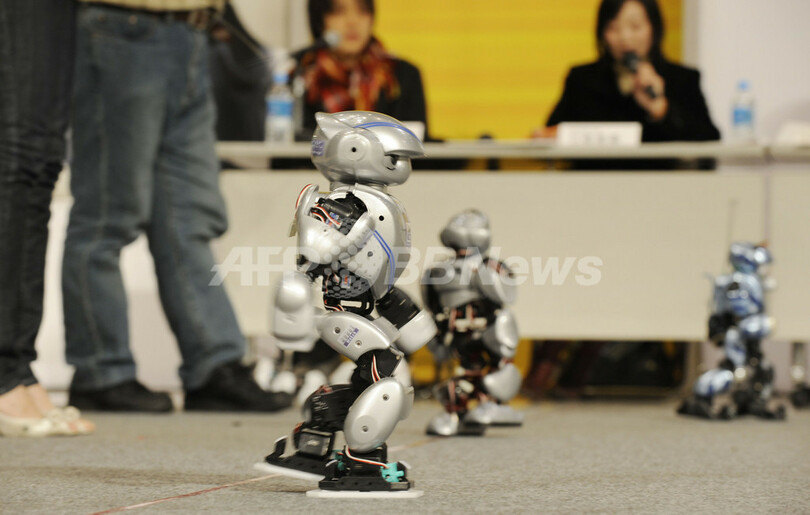 ニュース 環境・科学 こぼれ話 人型ロボットの運動会「アスレチクスヒューマノイドカップ」開催 2008年12月8日 10:38 発信地:東京 [ アジア・オセアニア 東京 ] このニュースをシェア ‹ › ❮ 2/3 ❯ 都内で開催された「2008 KYOSHO アスレチクスヒューマノイドカップ(KYOSHO Athletics Humanoid Cup)」で5メートル走に参加した、ラジオコントロールモデルメーカーの京商(Kyosho)のヒューマノイドロボット「マノイAT01(Manoi AT01))」(2008年12月7日撮影)。(c)AFP/Kazuhiro NOGI 画像作成中 ! 【12月8日 AFP】ラジオコントロールモデルメーカーの京商(Kyosho)は6-7日、都内で人型ロボット「マノイPF01(Manoi PF01)」シリーズの運動会「2008 KYOSHO アスレチクスヒューマノイドカップ(KYOSHO Athletics Humanoid Cup)」を開催した。大会には、約20体のロボットが参加した。(c)AFP 環境・科学 一覧へ> メディア・報道関係・法人の方向け 写真・動画 購入のお問合せ>