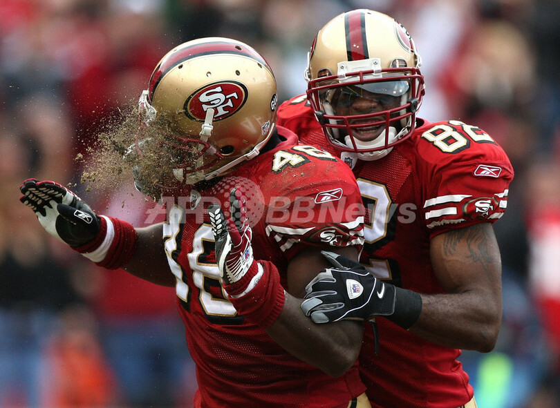 スポーツ アメリカンフットボール フォーティナイナーズ ジェッツに勝利し2連勝 2008年12月8日 14:24 発信地:サンフランシスコ/米国 [ 北米 米国 ] このニュースをシェア ‹ › ❮ 1/6 ❯ ニューヨーク・ジェッツ戦の第4クォーターに3ヤードのタッチダウンレシーブを決めてデレイニー・ウォーカー(%%Delanie Walker%%、左)と喜びを分かち合うサンフランシスコ・フォーティナイナーズのブライアント・ジョンソン(%%Bryant Johnson%%)。(2008年12月7日撮影)(c)AFP/Getty Images/Jed Jacobsohn 画像作成中 ! 【12月8日 AFP】08NFL・第14週、サンフランシスコ・フォーティナイナーズ(San Francisco 49ers)対ニューヨーク・ジェッツ(New York Jets)。試合はフォーティナイナーズが24-14で勝利し、2連勝を飾った。(c)AFP/Getty Images アメリカンフットボール 一覧へ> メディア・報道関係・法人の方向け 写真・動画 購入のお問合せ>