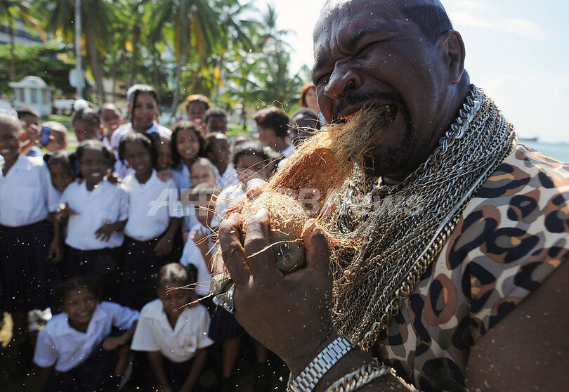 ニュース ライフ こぼれ話 「人間ココナツ皮むき機」、歯を使い6時間500個でギネス記録か 2008年12月8日 14:44 発信地:パナマ市/パナマ [ 中南米 パナマ ] このニュースをシェア ‹ › ❮ 6/11 ❯ パナマ市北方約100キロのコロン(Colon)で地元住民を前に、歯だけを使ったココナツの皮むきを披露するAndres Gardinさん。地元では「人間ココナツ皮むき機」として知られているGardinさんによると、9月に6時間で500個のココナツの皮を歯でむいたとして、ギネス世界記録(Guinness Book of World Records)に認定されたという(2008年12月3日撮影)。(c)AFP/Elmer Martinez 画像作成中 ! 【12月8日 AFP】パナマの「人間ココナツ皮むき機」として知られるAndres Gardinさん(60)。Gardinさんによると、9月に6時間で500個のココナツの皮を歯でむいたとして、ギネス世界記録(Guinness Book of World Records)に認定されたという。(c)AFP ライフ 一覧へ> メディア・報道関係・法人の方向け 写真・動画 購入のお問合せ>