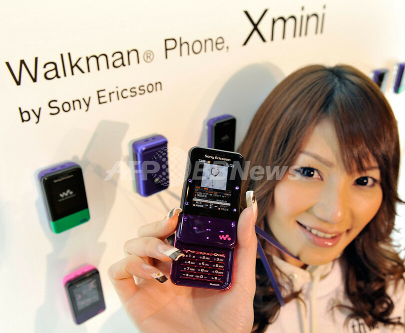 「ウォークマンフォン・Xmini」はソニー・エリクソン(Sony Ericsson)製で、4ギガバイトの大容量メモリーを内蔵、約2300曲を保存可能。12月下旬に発売される。(c)AFP