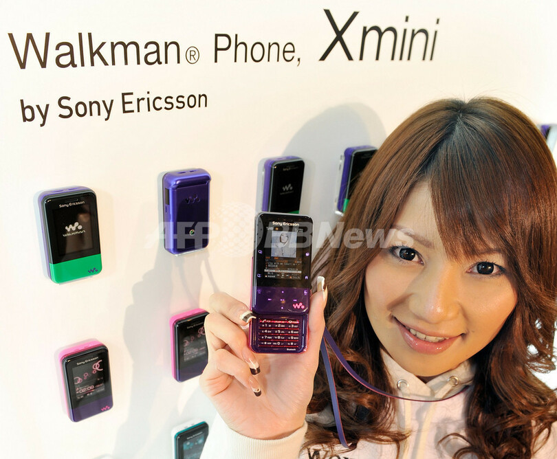 「ウォークマンフォン・Xmini」はソニー・エリクソン(Sony Ericsson)製で、4ギガバイトの大容量メモリーを内蔵、約2300曲を保存可能。12月下旬に発売される。(c)AFP