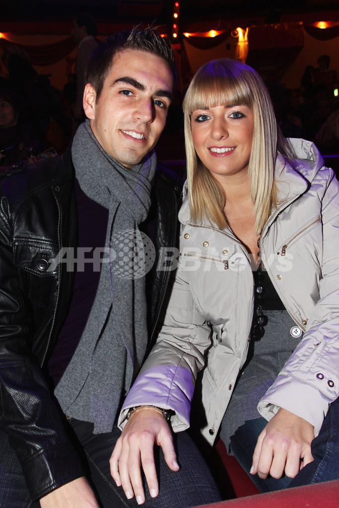 ミュンヘン(Munich)のサーカス・クローネ(%%Circus Krone%%)で開催されたFCバイエルン・サーカス・ガーラ(%%FC Bayern Circus Gala%%)に出席するバイエルン・ミュンヘン(%%Bayern Munich%%)のフィリップ・ラーム(%%Philipp Lahm%%)とガールフレンドのニコラ・ヴァレンティーナ(%%Nicola Valentina%%)さん。(2008年12月8日撮影)(c)AFP/JOHANNES SIMON