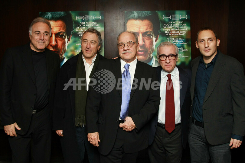 米ニューヨーク(New York)のブライアント・パーク・ホテル(Bryant Park Hotel)で映画『Adam Resurrected』の上映会に出席した(左から)プロデューサーのイハド・ブレイバーグ(Ehud Bleiberg)、俳優のロバート・デ・ニーロ(Robert De Niro)、同映画の監督ポール・シュレイダー(Paul Schrader)、映画監督マーティン・スコセッシ(Martin Scorsese)、脚本家のNoah Stollman(2008年12月8日撮影)。(c)AFP/Getty Images/Neilson Barnard