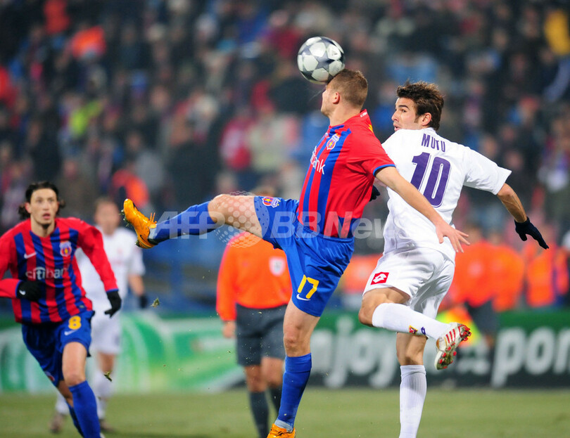 【12月11日 AFP】(写真追加)サッカー欧州チャンピオンズリーグ2008-09(UEFA Champions League 2008-09)グループリーグF最終節、ステアウア・ブカレスト(Steaua Bucharest)対フィオレンティーナ(Fiorentina)。試合はフィオレンティーナが1-0でステアウア・ブカレストを下し、サッカーUEFA杯2008-09(UEFA Cup 2008-09)進出を決めた。(c)AFP