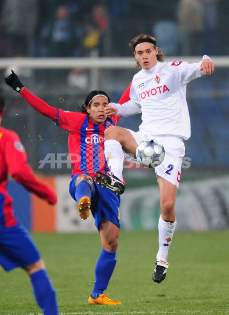 【12月11日 AFP】(写真追加)サッカー欧州チャンピオンズリーグ2008-09(UEFA Champions League 2008-09)グループリーグF最終節、ステアウア・ブカレスト(Steaua Bucharest)対フィオレンティーナ(Fiorentina)。試合はフィオレンティーナが1-0でステアウア・ブカレストを下し、サッカーUEFA杯2008-09(UEFA Cup 2008-09)進出を決めた。(c)AFP