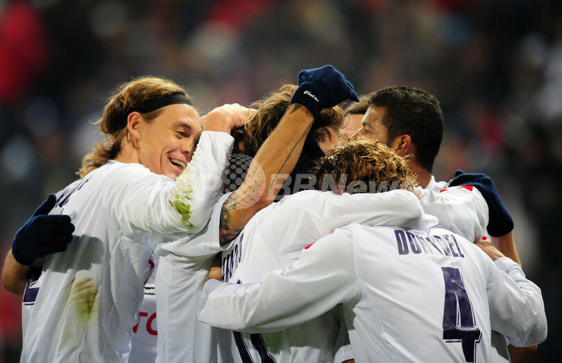 【12月11日 AFP】(写真追加)サッカー欧州チャンピオンズリーグ2008-09(UEFA Champions League 2008-09)グループリーグF最終節、ステアウア・ブカレスト(Steaua Bucharest)対フィオレンティーナ(Fiorentina)。試合はフィオレンティーナが1-0でステアウア・ブカレストを下し、サッカーUEFA杯2008-09(UEFA Cup 2008-09)進出を決めた。(c)AFP