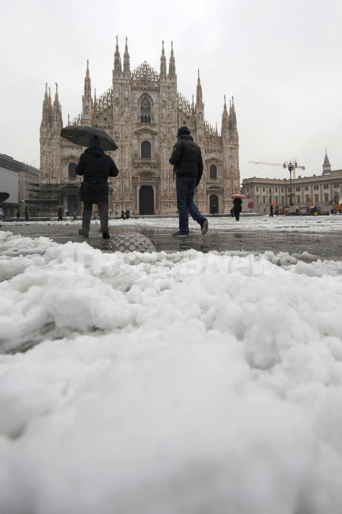 ニュース 社会 ミラノの大聖堂が雪化粧 2008年12月11日 15:26 発信地:ミラノ/イタリア [ ヨーロッパ イタリア ] このニュースをシェア ‹ › ❮ 6/8 ❯ イタリア北部ミラノ(Milano)のミラノ大聖堂(Duomo Di Milano、ドゥオモ)と雪に覆われたドゥオモ(Duomo)広場。市内は5センチの積雪を記録した。(2008年12月10日撮影)。(c)AFP/GIUSEPPE CACACE 画像作成中 ! 【12月11日 AFP】イタリア北部ミラノ(Milano)のミラノ大聖堂(Duomo Di Milano、ドゥオモ)と雪に覆われたドゥオモ(Duomo)広場。市内は5センチの積雪を記録した。(c)AFP/GIUSEPPE CACACE 社会 一覧へ> メディア・報道関係・法人の方向け 写真・動画 購入のお問合せ>