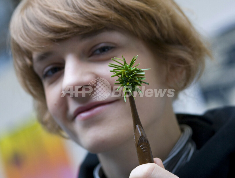 ニュース ライフ こぼれ話 「モミの木歯ブラシ」でクリスマス気分、磨き心地は? 2008年12月12日 11:48 発信地:カールスルーエ/ドイツ [ ヨーロッパ ドイツ ] このニュースをシェア ‹ › ❮ 2/3 ❯ モミの木の針葉樹を植え付けた歯ブラシを見せる、制作者のHeidi Herzigさん。Heidiさんはドイツ南部カールスルーエ(Karlsruhe)にある美術学校の学生で、同校では12日からクリスマスをテーマにした作品展を開催する(2008年12月10日撮影)。(c)AFP/DDP/MICHAEL LATZ 画像作成中 ! 【12月12日 AFP】クリスマスツリー用モミの木の針葉樹を植え付けた歯ブラシを使って、歯磨きを実演する制作者のHeidi Herzigさん。Heidiさんはドイツ南部カールスルーエ(Karlsruhe)のデザインアカデミーの学生で、同校では12日から21日まで、クリスマスをテーマにした学生やフリーのアーティストの作品展を開催する。(c)AFP ライフ 一覧へ> メディア・報道関係・法人の方向け 写真・動画 購入のお問合せ>