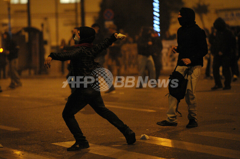 【12月12日 AFP】(写真追加)警官による15歳の少年の射殺をきっかけに全土に広がったギリシャの抗議行動は、発生から6日目の11日も、アテネ(Athens)にある同国最大の刑務所周辺や中心部の大学などでデモ隊と治安部隊の衝突が続いている。警察当局によると市内各所で複数の集団による店舗襲撃や主要道路への妨害も発生している。