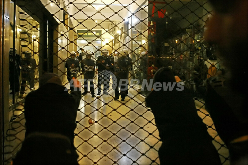 【12月12日 AFP】(写真追加)警官による15歳の少年の射殺をきっかけに全土に広がったギリシャの抗議行動は、発生から6日目の11日も、アテネ(Athens)にある同国最大の刑務所周辺や中心部の大学などでデモ隊と治安部隊の衝突が続いている。警察当局によると市内各所で複数の集団による店舗襲撃や主要道路への妨害も発生している。