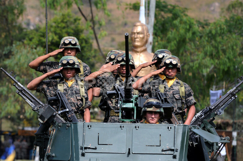 ホンジュラスの首都テグシガルパ(Tegucigalpa)南部のParada Marteキャンプで行われた、Army Dayの祝典に参加する兵士(2008年12月11日撮影)。(c)AFP/Orlando SIERRA