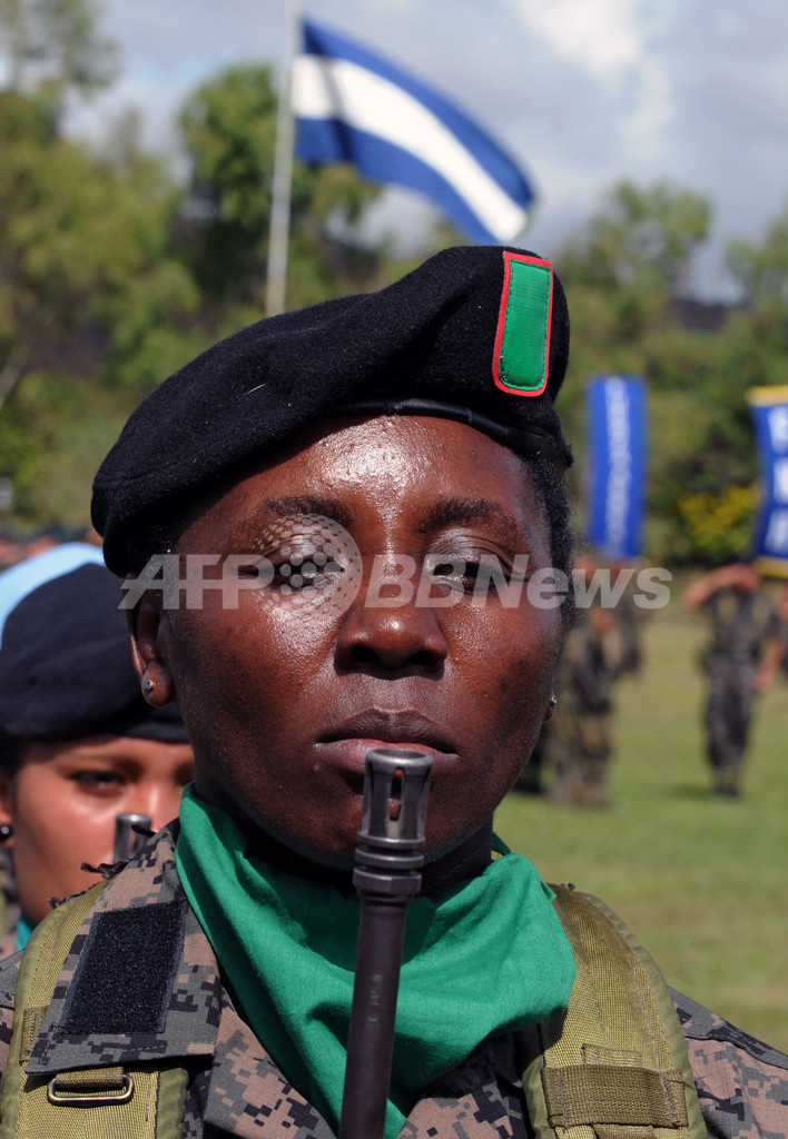 ホンジュラスの首都テグシガルパ(Tegucigalpa)南部のParada Marteキャンプで行われた、Army Dayの祝典に参加する兵士(2008年12月11日撮影)。(c)AFP/Orlando SIERRA