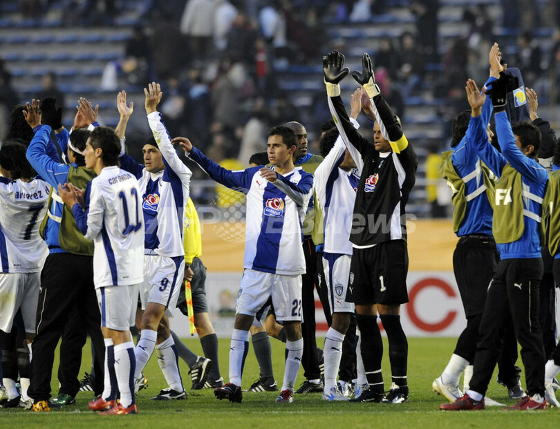 スポーツ サッカー 準々決勝アル・アハリ対CFパチューカ、08クラブW杯 2008年12月13日 18:41 発信地:東京 [ アジア・オセアニア 東京 ] このニュースをシェア ‹ › ❮ 1/30 ❯ 08クラブW杯(%%FIFA Club World Cup Japan 2008%%)準々決勝、アル・アハリ(%%Al-Ahly%%、エジプト)対CFパチューカ(%%CF Pachuca%%、メキシコ)戦、アル・アハリを下し準決勝進出に歓喜するCFパチューカの選手たち。(2008年12月13日撮影)(c)AFP/TOSHIFUMI KITAMURA 画像作成中 ! 【12月13日 AFP】08クラブW杯(FIFA Club World Cup Japan 2008)準々決勝、アル・アハリ(Al-Ahly、エジプト)対CFパチューカ(CF Pachuca、メキシコ)。試合は延長戦の末、CFパチューカが4-2でアル・アハリを下し、リーガ・デ・キト(LDU Quito、エクアドル)との準決勝へと駒を進めた。(c)AFP サッカー 一覧へ> メディア・報道関係・法人の方向け 写真・動画 購入のお問合せ>