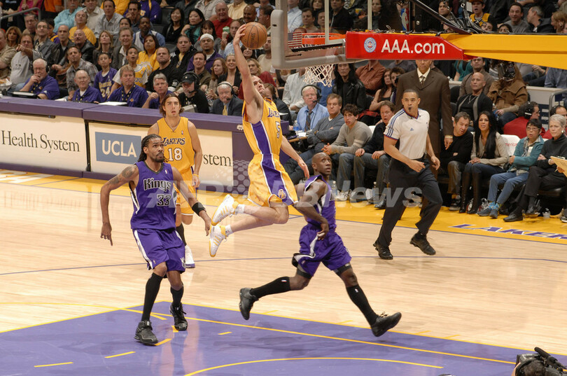 スポーツ バスケットボール レイカーズ キングスに勝利 2008年12月13日 18:46 発信地:ロサンゼルス/米国 [ 北米 米国 ] このニュースをシェア ‹ › ❮ 6/11 ❯ サクラメント・キングス戦でダンクに跳ぶロサンゼルス・レイカーズのジョーダン・ファーマー(%%Jordan Farmar%%、中央)。(2008年12月12日撮影)(c)AFP/Getty Images/NBAE/Andrew D. Bernstein 画像作成中 ! 【12月13日 AFP】08-09NBA、ロサンゼルス・レイカーズ(Los Angeles Lakers)対サクラメント・キングス(Sacramento Kings)。試合はレイカーズが112-103でキングスを下した。(c)AFP/Getty Images バスケットボール 一覧へ> メディア・報道関係・法人の方向け 写真・動画 購入のお問合せ>