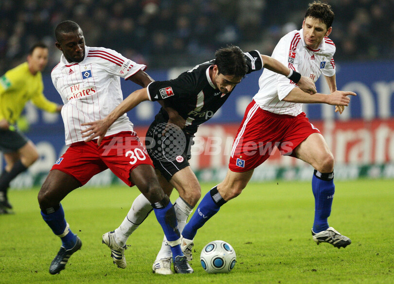 スポーツ サッカー ハンブルガーSV ホームでフランクフルトを下す 2008年12月14日 8:10 発信地:ハンブルク/ドイツ [ ヨーロッパ ドイツ ] このニュースをシェア ‹ › ❮ 5/5 ❯ ハンブルガーSVのコリン・ベンジャミン(%%Collin Benjamin%%、左)とバスティアン・ラインハルト(%%Bastian Reinhardt%%、右)に囲まれるフランクフルトのニコス・リベロプーロス(%%Nikos Liberopoulos%%)。(2008年12月13日撮影)(c)AFP/DDP/ROLAND MAGUNIA 画像作成中 ! 【12月14日 AFP】08-09ドイツ・ブンデスリーガ1部第17節、ハンブルガーSV(Hamburger SV)対フランクフルト(Eintracht Frankfurt)。試合はハンブルガーSVが1-0でフランクフルトを下した。(c)AFP サッカー 一覧へ> メディア・報道関係・法人の方向け 写真・動画 購入のお問合せ>