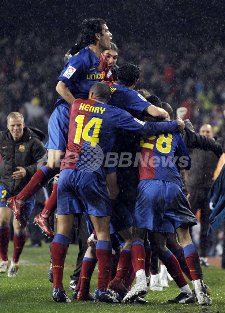 試合終盤にサミュエル・エトー(Samuel Eto’o)とリオネル・メッシ(Lionel Messi)が得点を決め、本拠地カンプ・ノウ・スタジアム(Camp Nou stadium)で行われた雨のエル・クラシコ(el clasico)を制したバルセロナは、永遠のライバルであるレアル・マドリードとの勝ち点差を12に広げた。