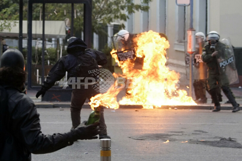 深夜にはアテネの議会前に若者ら約200人が集まったが、警官隊が集会を取り囲み解散させた。