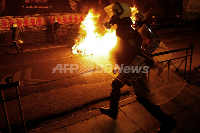 深夜にはアテネの議会前に若者ら約200人が集まったが、警官隊が集会を取り囲み解散させた。
