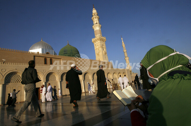 【12月16日 AFP】イスラム教の聖地メッカ(Mecca)への大巡礼「ハッジ(Hajj)」が前週に終わり、静けさを取り戻した聖地メディナ(Medina)で、日没の礼拝が行われる預言者モスク(Prophet Mohammed Mosque)。