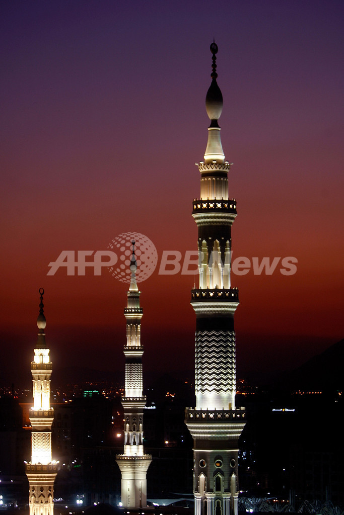 【12月16日 AFP】イスラム教の聖地メッカ(Mecca)への大巡礼「ハッジ(Hajj)」が前週に終わり、静けさを取り戻した聖地メディナ(Medina)で、日没の礼拝が行われる預言者モスク(Prophet Mohammed Mosque)。