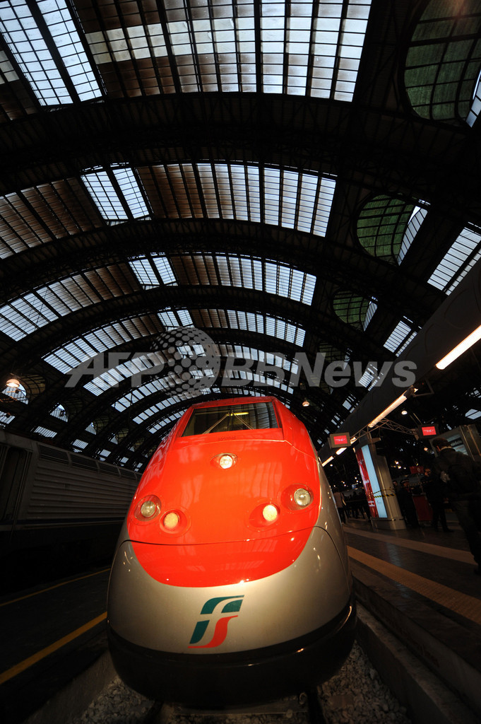 ニュース 政治・経済 イタリアで高速鉄道用新線が開通、ミラノ-ローマ間が3時間半に 2008年12月15日 10:37 発信地:ミラノ/イタリア [ ヨーロッパ イタリア ] このニュースをシェア ‹ › ❮ 7/11 ❯ イタリアで13日に開通した高速鉄道用新線の車両「Freccia Rossa」。ミラノ中央駅に停車中。営業運転は翌14日から開始。高速化によりミラノ-ローマ間の所要時間が3時間30分に短縮される(2008年12月13日撮影)。(c)AFP/GIUSEPPE CACACE 画像作成中 ! 【12月15日 AFP】13日にイタリアで開通した高速鉄道用新線の車両「Freccia Rossa(「赤い矢」の意味)」。営業運転は翌14日からが開始。高速化によりミラノ-ローマ間の所要時間が3時間30分に短縮される。(c)AFP/GIUSEPPE CACACE 政治・経済 一覧へ> メディア・報道関係・法人の方向け 写真・動画 購入のお問合せ>