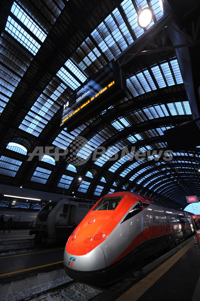 ニュース 政治・経済 イタリアで高速鉄道用新線が開通、ミラノ-ローマ間が3時間半に 2008年12月15日 10:37 発信地:ミラノ/イタリア [ ヨーロッパ イタリア ] このニュースをシェア ‹ › ❮ 6/11 ❯ イタリアで13日に開通した高速鉄道用新線の車両「Freccia Rossa」。ミラノ中央駅に停車中。営業運転は翌14日から開始。高速化によりミラノ-ローマ間の所要時間が3時間30分に短縮される(2008年12月13日撮影)。(c)AFP/GIUSEPPE CACACE 画像作成中 ! 【12月15日 AFP】13日にイタリアで開通した高速鉄道用新線の車両「Freccia Rossa(「赤い矢」の意味)」。営業運転は翌14日からが開始。高速化によりミラノ-ローマ間の所要時間が3時間30分に短縮される。(c)AFP/GIUSEPPE CACACE 政治・経済 一覧へ> メディア・報道関係・法人の方向け 写真・動画 購入のお問合せ>