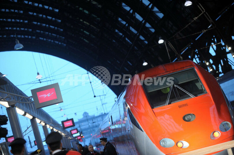 ニュース 政治・経済 イタリアで高速鉄道用新線が開通、ミラノ-ローマ間が3時間半に 2008年12月15日 10:37 発信地:ミラノ/イタリア [ ヨーロッパ イタリア ] このニュースをシェア ‹ › ❮ 5/11 ❯ イタリアで13日に開通した高速鉄道用新線の車両「Freccia Rossa」。ミラノ中央駅に停車中。営業運転は翌14日から開始。高速化によりミラノ-ローマ間の所要時間が3時間30分に短縮される(2008年12月13日撮影)。(c)AFP/GIUSEPPE CACACE 画像作成中 ! 【12月15日 AFP】13日にイタリアで開通した高速鉄道用新線の車両「Freccia Rossa(「赤い矢」の意味)」。営業運転は翌14日からが開始。高速化によりミラノ-ローマ間の所要時間が3時間30分に短縮される。(c)AFP/GIUSEPPE CACACE 政治・経済 一覧へ> メディア・報道関係・法人の方向け 写真・動画 購入のお問合せ>