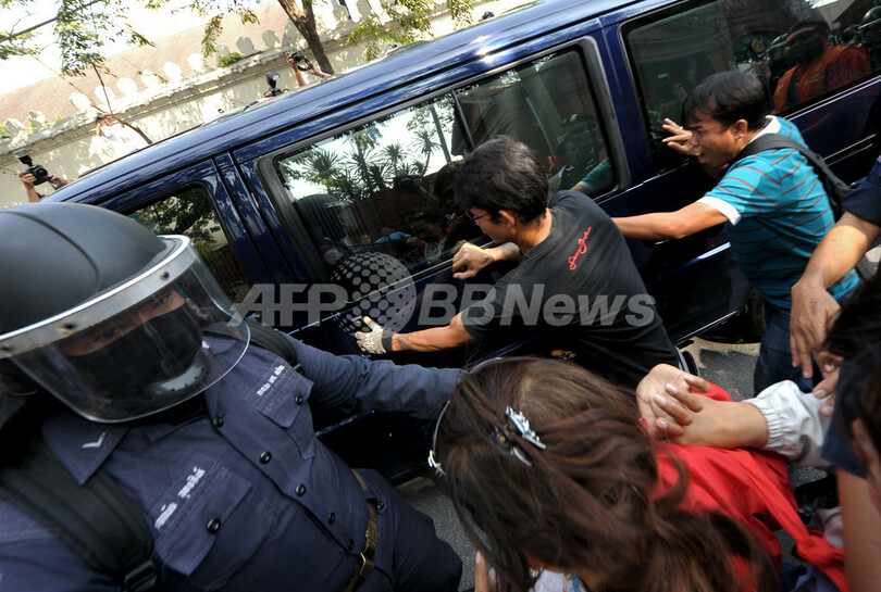 【12月15日 AFP】タイ・バンコク(Bangkok)で15日、野党民主党(Democrat Party)のアピシット・ウェチャチワ(Abhisit Vejjajiva)党首が新首相に選出されたことに抗議し、タクシン・シナワット(Thaksin Shinawatra)元首相の支持者らが議事堂を取り囲み、警官隊ともみ合う騒ぎとなった。