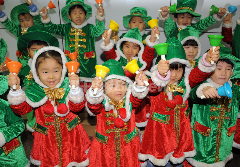 ニュース ライフ ソウルで子どもたちが募金集めのベル演奏 2008年12月18日 11:34 発信地:ソウル/韓国 [ 韓国・北朝鮮 韓国 ] このニュースをシェア ‹ › ❮ 2/5 ❯ 韓国・ソウル(Seoul)の地下鉄駅構内で、救世軍(Salvation Army)の歳末募金活動のため、ハンドベルを演奏するサンタクロースの衣装を着けた子どもたち(2008年12月17日撮影)。(c)AFP/JUNG YEON-JE 画像作成中 ! 【12月18日 AFP】韓国・ソウル(Seoul)で17日、救世軍(Salvation Army)ソウル支部による生活困窮者支援のための歳末募金活動が行われ、サンタクロースの衣装を着けた子どもたちが地下鉄駅構内でハンドベルを演奏した。(c)AFP ライフ 一覧へ> メディア・報道関係・法人の方向け 写真・動画 購入のお問合せ>