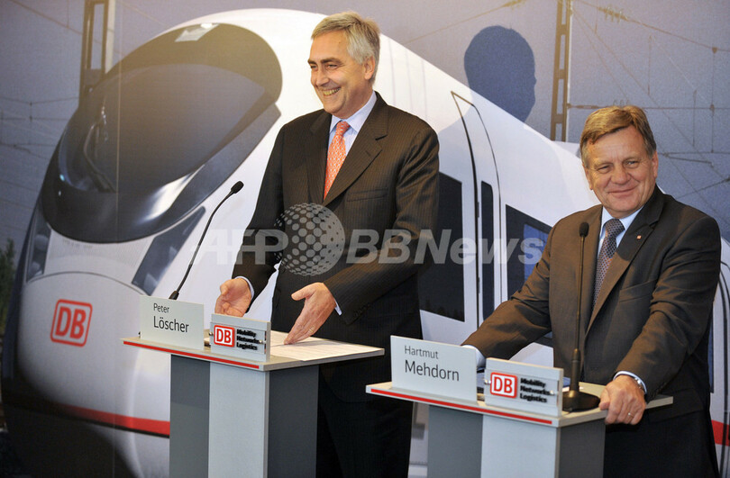 ニュース 政治・経済 シーメンス、ドイツ鉄道新幹線で600億円受注契約 2008年12月18日 10:42 発信地:ベルリン/ドイツ [ ヨーロッパ ドイツ ] このニュースをシェア ‹ › ❮ 4/8 ❯ ドイツの首都ベルリン(Berlin)のドイツ鉄道(Deutsche Bahn)本社で、契約調印に先がけ記者会見するドイツ電機大手シーメンス(Siemens)のペーター・レッシャー(Peter Loescher)社長兼最高経営責任者(CEO、左)とドイツ鉄道のハートムート・メードルン(Hartmut Mehdorn)総裁(2008年12月17日撮影)。(c)AFP/ JOHN MACDOUGALL 画像作成中 ! 【12月18日 AFP】ドイツ電機大手シーメンス(Siemens)は17日、ドイツ鉄道(Deutsche Bahn)との間で新幹線「ICE 3」新型車両の受注契約に調印した。受注総額は、約5億ユーロ(約628億円)に上る。(c)AFP 政治・経済 一覧へ> メディア・報道関係・法人の方向け 写真・動画 購入のお問合せ>