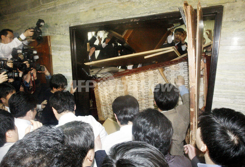 韓国国会、米韓FTA批准めぐり乱闘騒ぎに