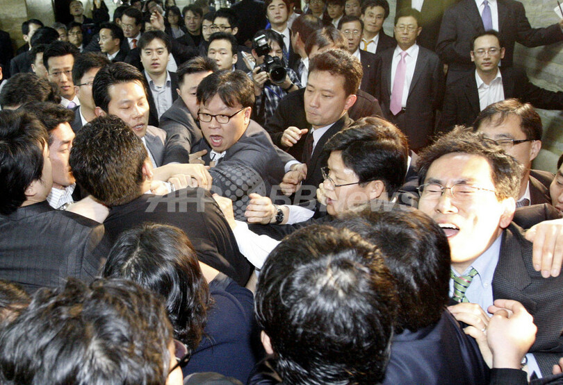 【12月18日 AFP】米国との自由貿易協定(FTA)の批准案をめぐる与党ハンナラ党(Grand National Party、GNP)と野党との対立は18日、韓国国会での乱闘騒ぎに発展した。