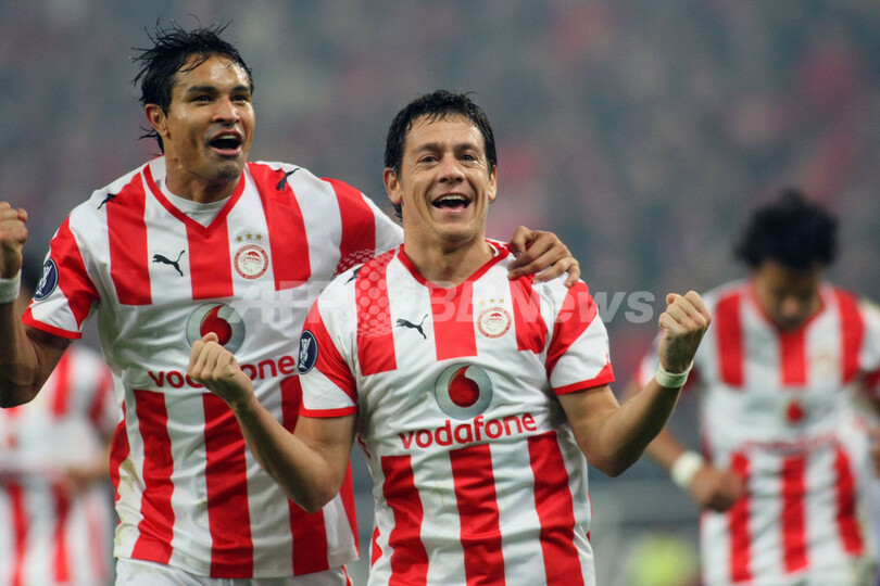 スポーツ サッカー オリンピアコス ヘルタ・ベルリンに快勝で決勝トーナメント進出へ 2008年12月19日 8:37 発信地:ピレウス/ギリシャ [ ヨーロッパ ギリシャ ] このニュースをシェア ‹ › ❮ 1/6 ❯ 後半23分にペナルティーキック(PK)からチーム2点目を決めて歓喜するオリンピアコスのルチアーノ・ガレッティ(%%Luciano Galletti%%、中央)。(2008年12月18日撮影)(c)AFP/ARIS MESSINIS 画像作成中 ! 【12月19日 AFP】サッカーUEFA杯2008-09(UEFA Cup 2008-09)グループリーグB最終節、オリンピアコス(Olympiacos FC)対ヘルタ・ベルリン(Hertha Berlin)。試合はオリンピアコスが4-0ヘルタ・ベルリンに快勝し、同組3位で決勝トーナメント進出を決めた。(c)AFP サッカー 一覧へ> メディア・報道関係・法人の方向け 写真・動画 購入のお問合せ>