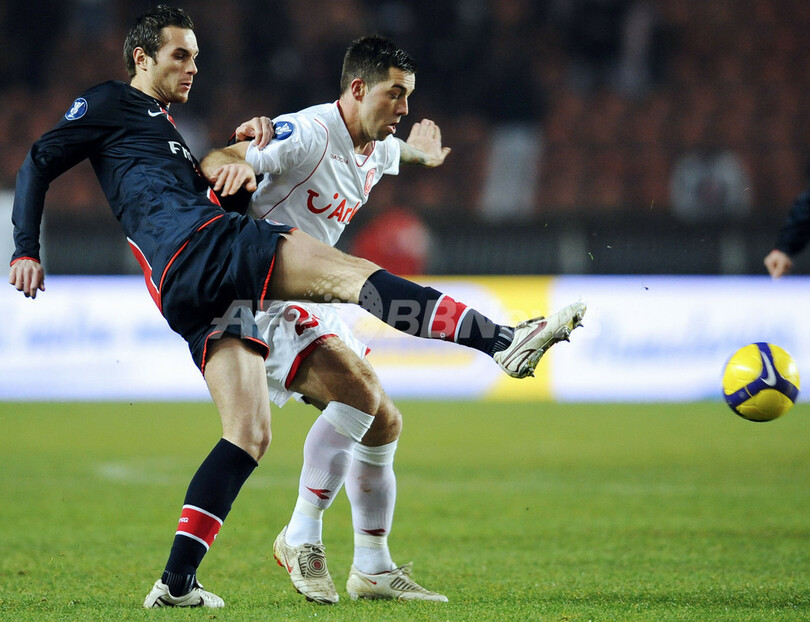 スポーツ サッカー パリ・サンジェルマン 快勝で決勝トーナメント進出 2008年12月19日 8:33 発信地:パリ/フランス [ ヨーロッパ フランス ] このニュースをシェア ‹ › ❮ 7/11 ❯ パリ・サンジェルマンのグレゴリー・ブリヨン(%%Gregory Bourillon%%、左)と競り合うFCトウェンテ・エンスヘーデのテオ・ヤンセン(%%Theo Janssen%%)。(2008年12月18日撮影)(c)AFP/FRANCK FIFE 画像作成中 ! 【12月19日 AFP】サッカーUEFA杯2008-09(UEFA Cup 2008-09)グループリーグA最終節、パリ・サンジェルマン(Paris Saint-Germain)対FCトウェンテ・エンスヘーデ(FC Twente Enschede)。試合はパリ・サンジェルマンが4-0でFCトウェンテに快勝し、同グループ3位に入り決勝トーナメント進出を決めた。(c)AFP サッカー 一覧へ> メディア・報道関係・法人の方向け 写真・動画 購入のお問合せ>