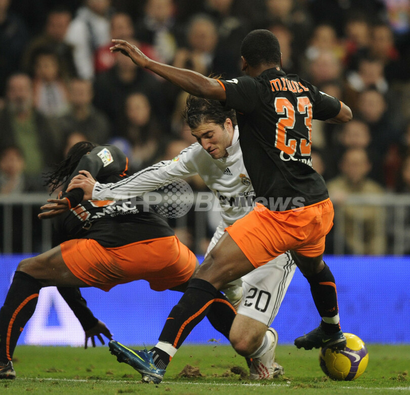 スポーツ サッカー レアル・マドリード ラモス監督リーグ戦初勝利 2008年12月21日 9:03 発信地:バルセロナ/スペイン [ ヨーロッパ スペイン ] このニュースをシェア ‹ › ❮ 7/12 ❯ バレンシアのルイス・ミゲル(%%Luis Miguel%%、右)とマヌエル・フェルナンデス(%%Manuel Fernandes%%)にマークされるレアル・マドリードのゴンサロ・イグアイン(中央)。(2008年12月20日撮影)(c)AFP/PIERRE-PHILIPPE MARCOU 画像作成中 ! 【12月21日 AFP】08-09スペイン1部リーグ・第16節、レアル・マドリード(Real Madrid)対バレンシア(Valencia CF)。試合は前半3分にゴンサロ・イグアイン(Gonzalo Higuain)がゴールを決めてレアル・マドリードが1-0で勝利を収め、フアンデ・ラモス(Juan de la Cruz Ramos)監督は就任後リーグ戦で初勝利を飾った。(c)AFP/Tim Hanlon サッカー 一覧へ> メディア・報道関係・法人の方向け 写真・動画 購入のお問合せ>