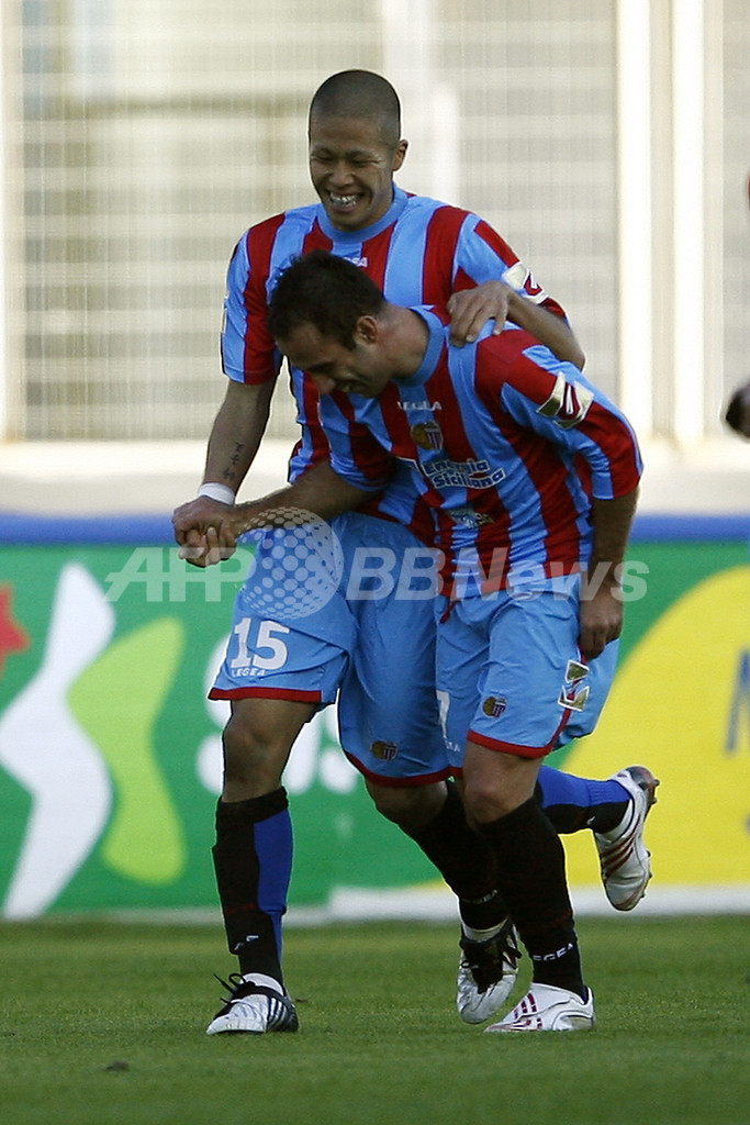 スポーツ サッカー 森本が2得点を記録したカターニアがASローマに勝利 2008年12月22日 6:35 発信地:カターニア/イタリア [ ヨーロッパ イタリア ] このニュースをシェア ‹ › ❮ 15/16 ❯ 前半40分にゴールを決めてチームメイトのジュゼッペ・マスカラ(%%Giuseppe Mascara%%)に祝福されるカターニアの森本貴幸。(2008年12月21日撮影)(c)AFP/MARCELLO PATERNOSTRO 画像作成中 ! 【12月22日 AFP】08-09イタリア・セリエA第17節、カターニア(Calcio Catania)対ASローマ(AS Roma)。試合は森本貴幸(Takayuki Morimoto)が2得点(前半40分、後半11分)を記録したカターニアが3-2でASローマを下した。(c)AFP サッカー 一覧へ> メディア・報道関係・法人の方向け 写真・動画 購入のお問合せ>