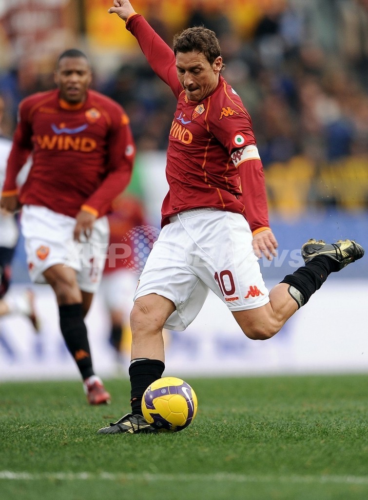 【12月23日 AFP】イタリア・セリエA、ASローマ(AS Roma)のフランチェスコ・トッティ(Francesco Totti)が、21日に行われたカターニア(Calcio Catania)とのリーグ戦で右太ももを痛め、1か月ほど戦列を離れることになった。