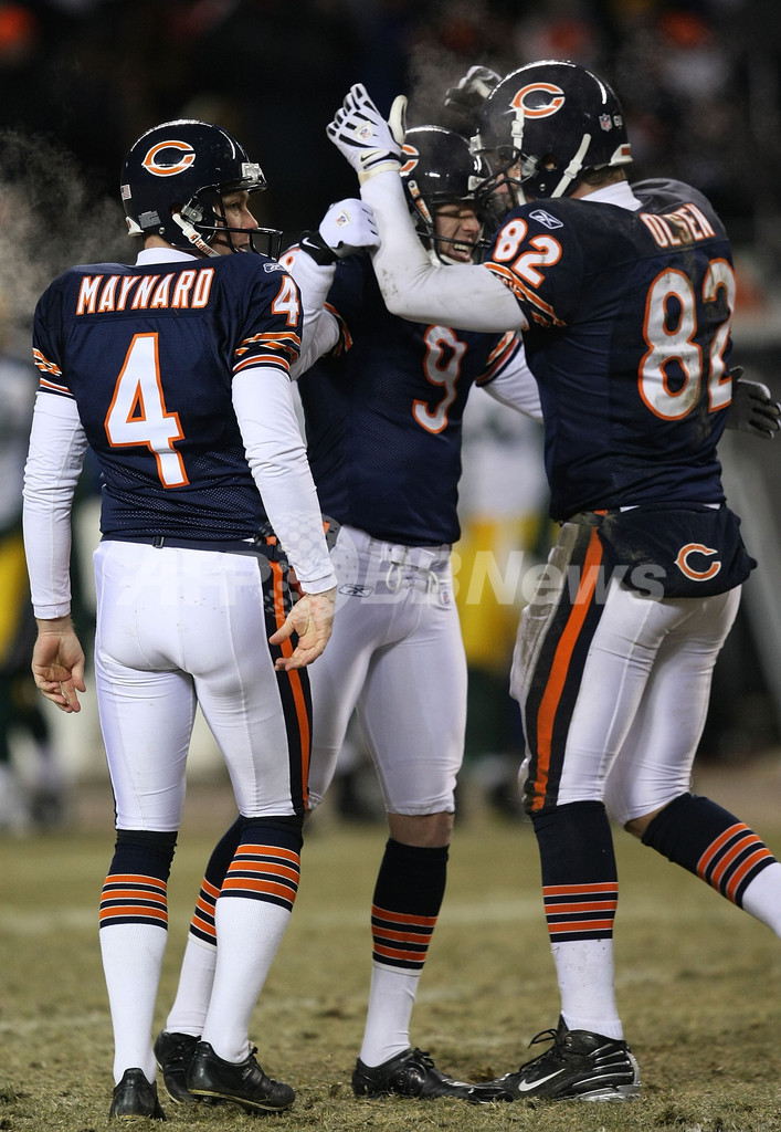 【12月23日 AFP】(記事更新)08NFL・第16週、シカゴ・ベアーズ(Chicago Bears)対グリーンベイ・パッカーズ(Green Bay Packers)。試合はロビー・ゴウルド(Robbie Gould)がオーバータイムに38ヤードのフィールドゴールを決めてベアーズが20-17で勝利を収め、ベアーズは9勝目を挙げプレーオフ進出に望みをつないだ。
