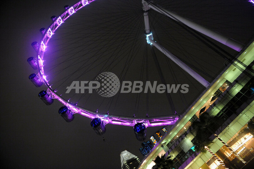 【12月23日 AFP】(一部更新、写真追加)シンガポールで23日、世界最大の観覧車「シンガポール・フライヤー(Singapore Flyer)」が電源異常で運転中に停止し、乗客100人以上が約6時間にわたって閉じ込められた。