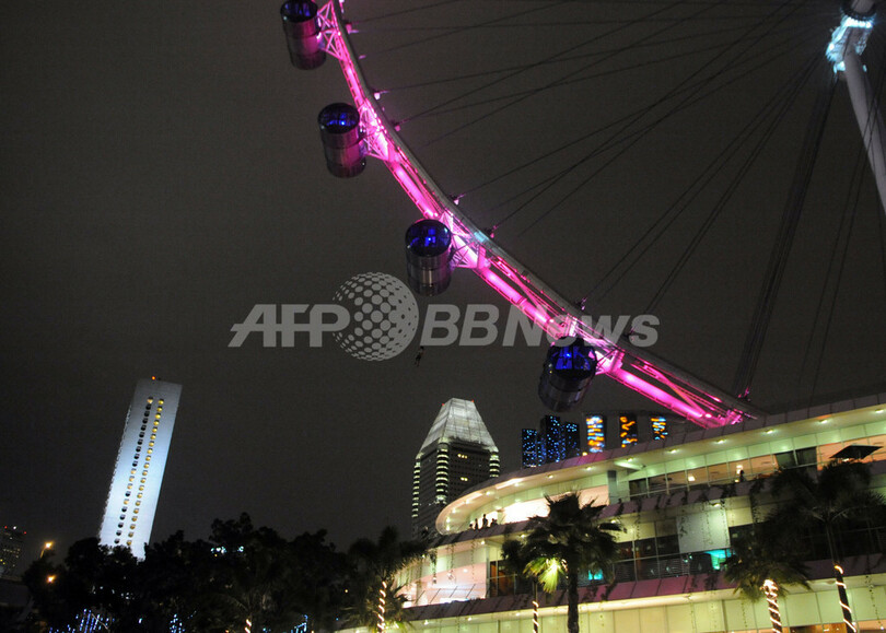 【12月23日 AFP】(一部更新、写真追加)シンガポールで23日、世界最大の観覧車「シンガポール・フライヤー(Singapore Flyer)」が電源異常で運転中に停止し、乗客100人以上が約6時間にわたって閉じ込められた。