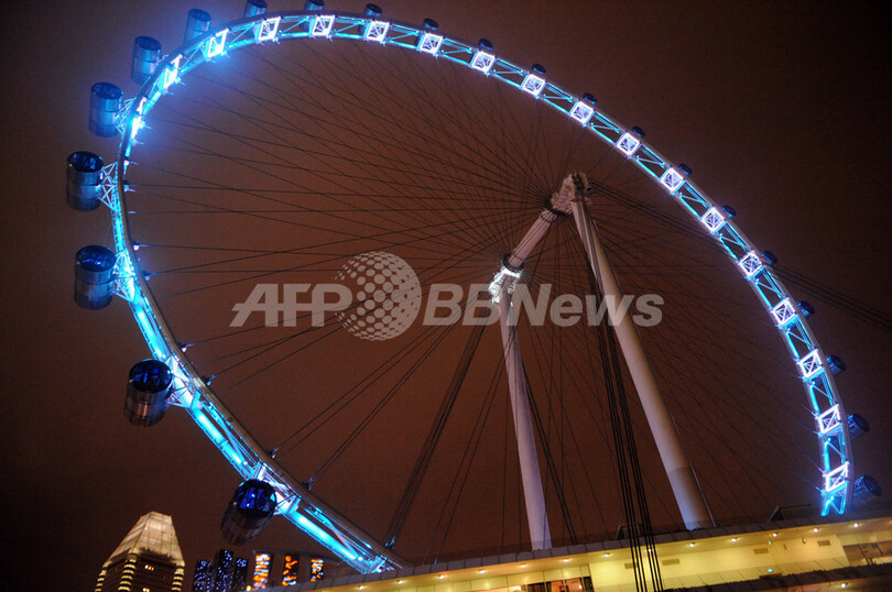 【12月23日 AFP】(一部更新、写真追加)シンガポールで23日、世界最大の観覧車「シンガポール・フライヤー(Singapore Flyer)」が電源異常で運転中に停止し、乗客100人以上が約6時間にわたって閉じ込められた。