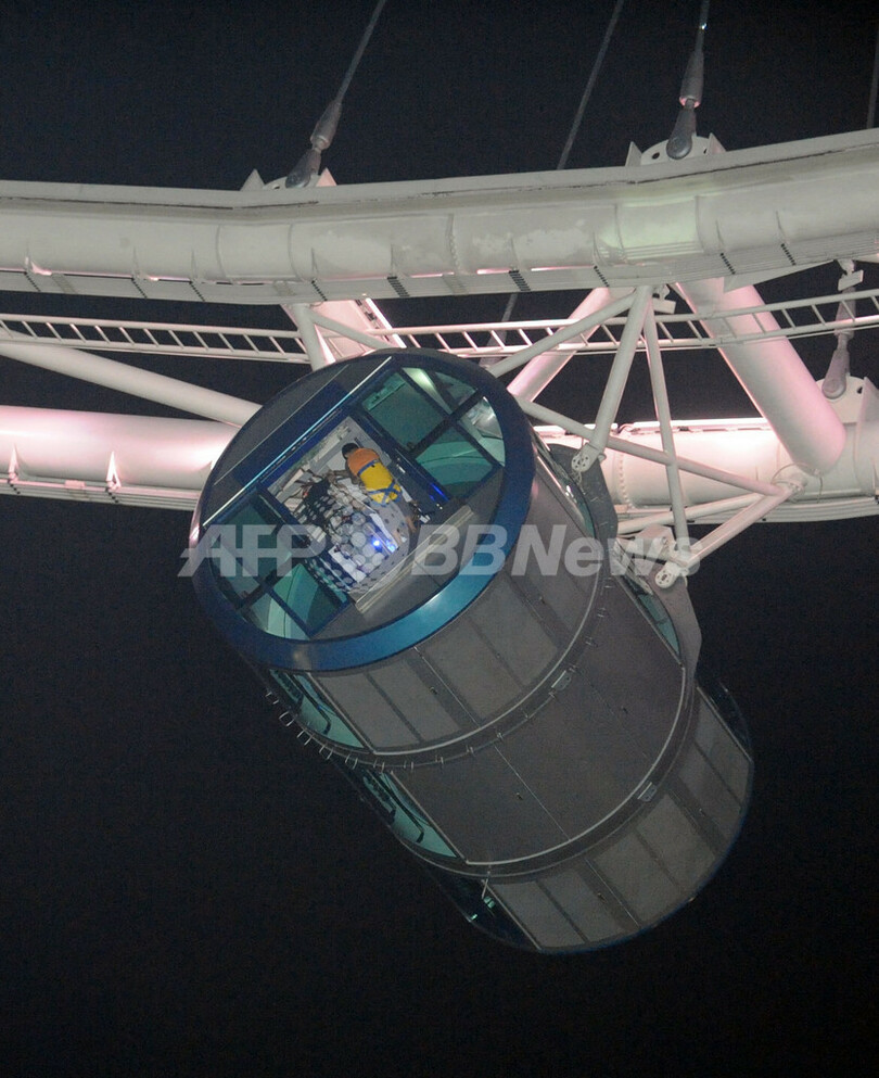 【12月23日 AFP】(一部更新、写真追加)シンガポールで23日、世界最大の観覧車「シンガポール・フライヤー(Singapore Flyer)」が電源異常で運転中に停止し、乗客100人以上が約6時間にわたって閉じ込められた。