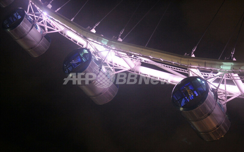 【12月23日 AFP】(一部更新、写真追加)シンガポールで23日、世界最大の観覧車「シンガポール・フライヤー(Singapore Flyer)」が電源異常で運転中に停止し、乗客100人以上が約6時間にわたって閉じ込められた。