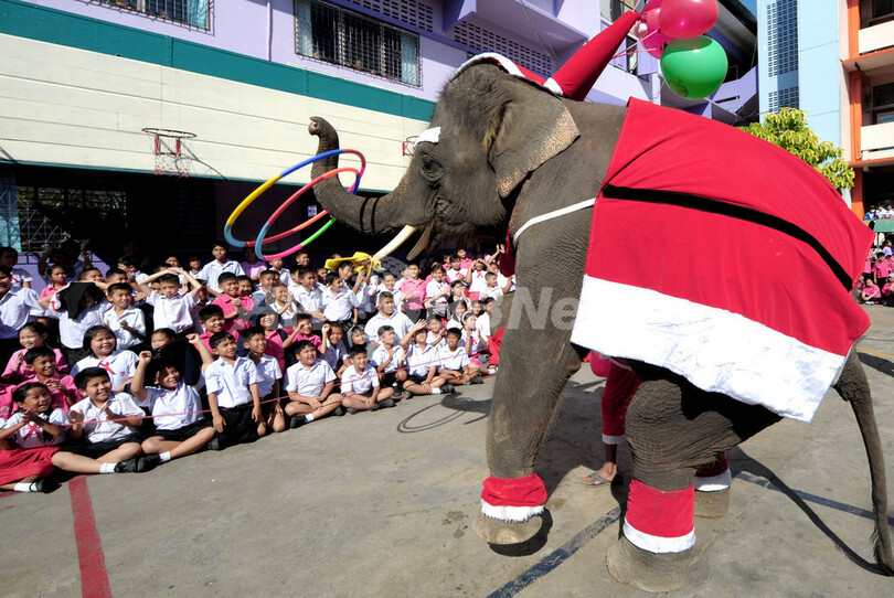 ニュース ライフ ゾウのサンタが小学生に芸を披露 タイ 2008年12月24日 16:33 発信地:タイ [ アジア・オセアニア タイ ] このニュースをシェア ‹ › ❮ 8/9 ❯ タイの首都バンコク(Bangkok)の北に位置するアユタヤ(Ayutthaya)県の小学校で行われたクリスマスを祝う行事で、子どもたちに芸を披露するサンタクロースの衣装を着たゾウ(2008年12月23日撮影)。(c)AFP/PORNCHAI KITTIWONGSAKUL 画像作成中 ! 【12月24日】タイの首都バンコク(Bangkok)の北に位置するアユタヤ(Ayutthaya)県の小学校で23日に行われたクリスマス行事で、サンタクロースの衣装を着たゾウが子どもたちに芸を披露した。(c)AFP ライフ 一覧へ> メディア・報道関係・法人の方向け 写真・動画 購入のお問合せ>