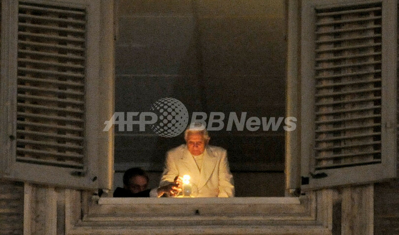 【12月25日 AFP】クリスマスイブを迎えたバチカンで24日、ローマ法王ベネディクト16世(Benedict XVI)がサンピエトロ広場(St Peter's Square)を見下ろす居室のバルコニーに姿を現してろうそくを灯し、深夜ミサが幕を開けた。